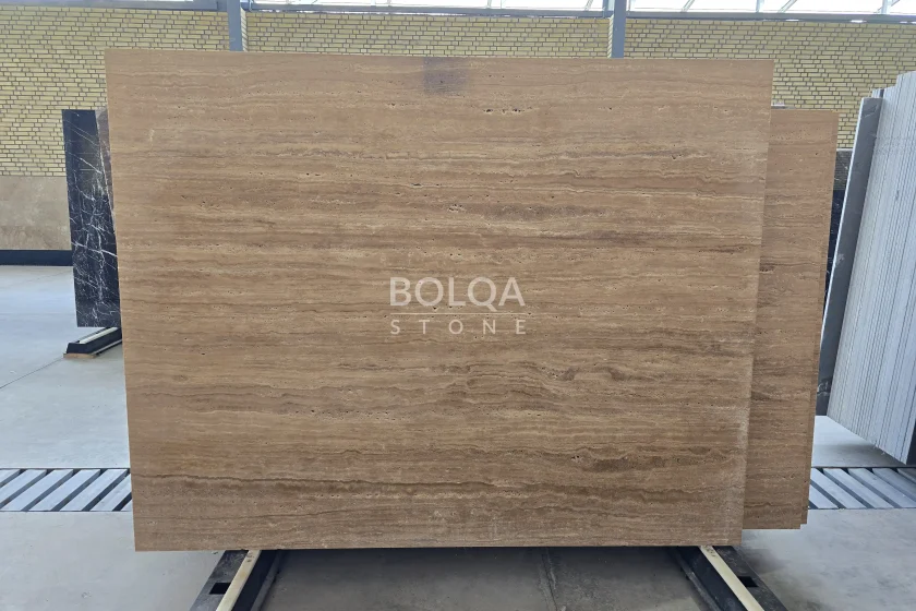 Light Brown Travertine from Iran offers warm beige–tan tones with fine pores, available in export-grade slabs, tiles, and blocks. Ideal for large commercial and residential projects, it delivers timeless elegance with flexible finishes. Choose BOLQA for consistent sorting and reliable global logistics.
