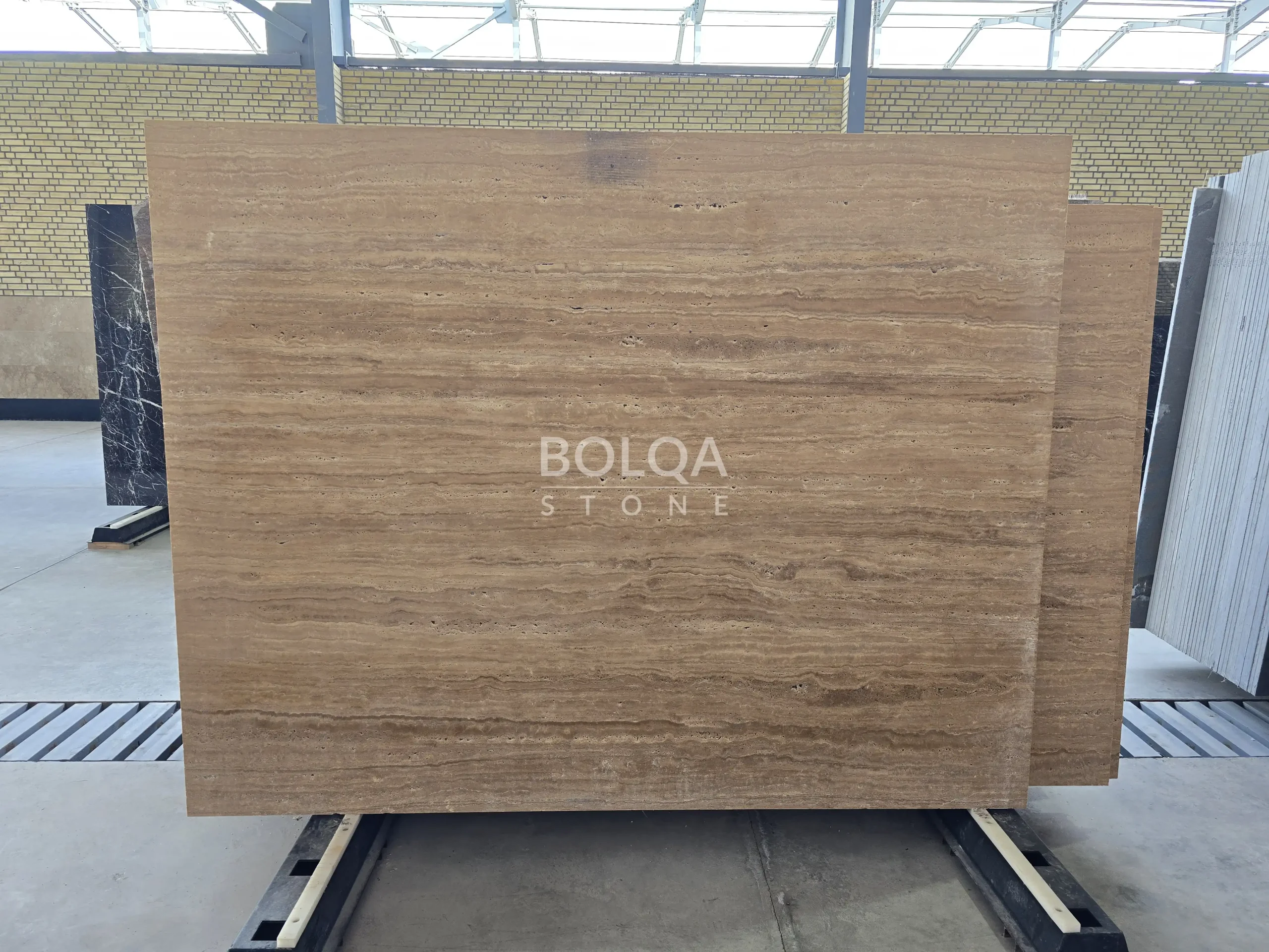 Light Brown Travertine from Iran delivers a warm, contemporary look with soft beige–tan tones and gentle clouding. This versatile material is ideal for scalable commercial supply in slabs, tiles, and blocks. Explore more options in our brown travertine tiles collection. As a wholesale travertine supplier, BOLQA serves global projects with consistent grading and export-ready packaging.