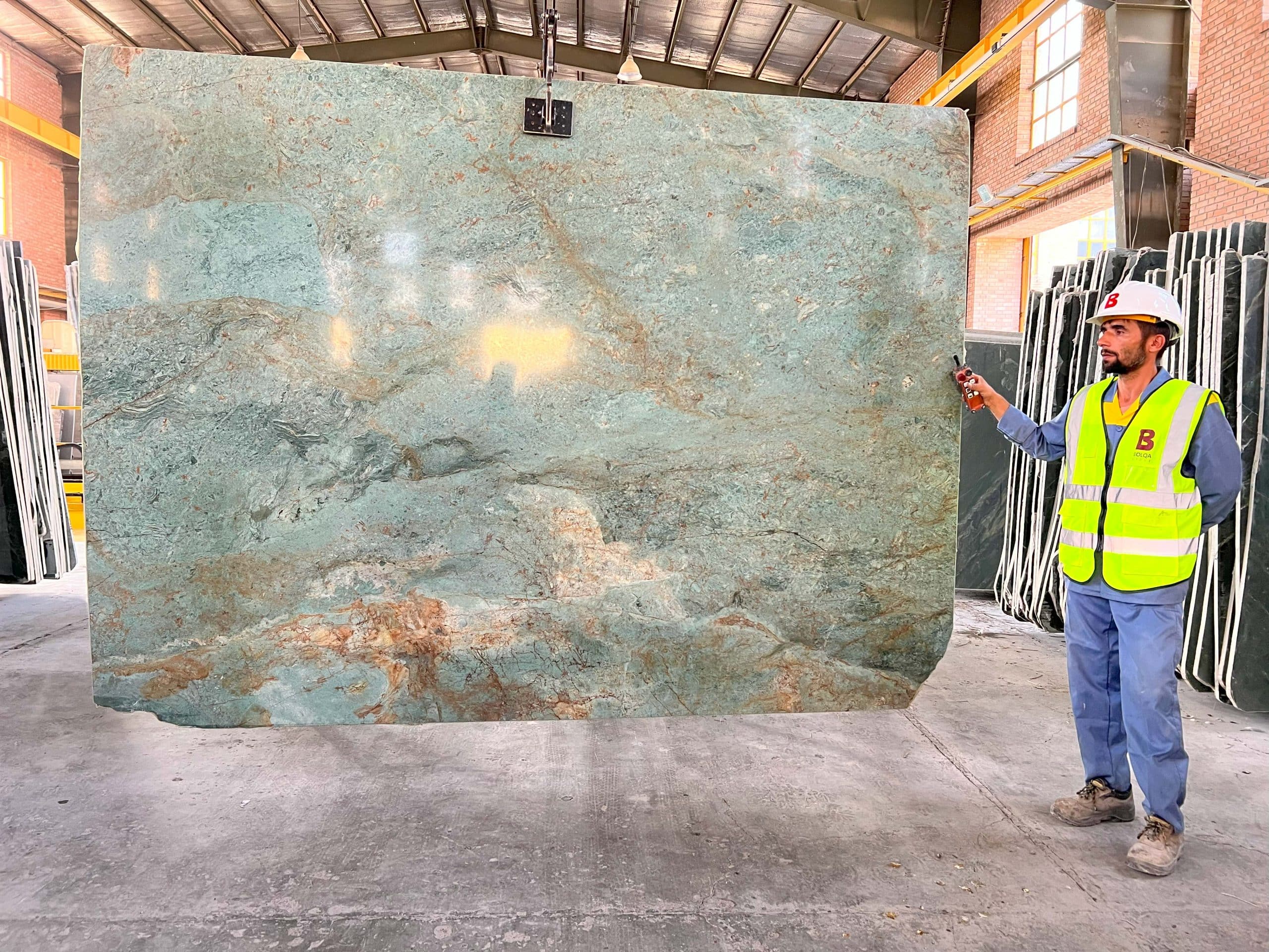 Exclusively quarried in Iran, Turquoise Granite showcases the depth and stability associated with Iranian geology and production standards—supported by BOLQA’s capability as an experienced Iranian stone exporter.