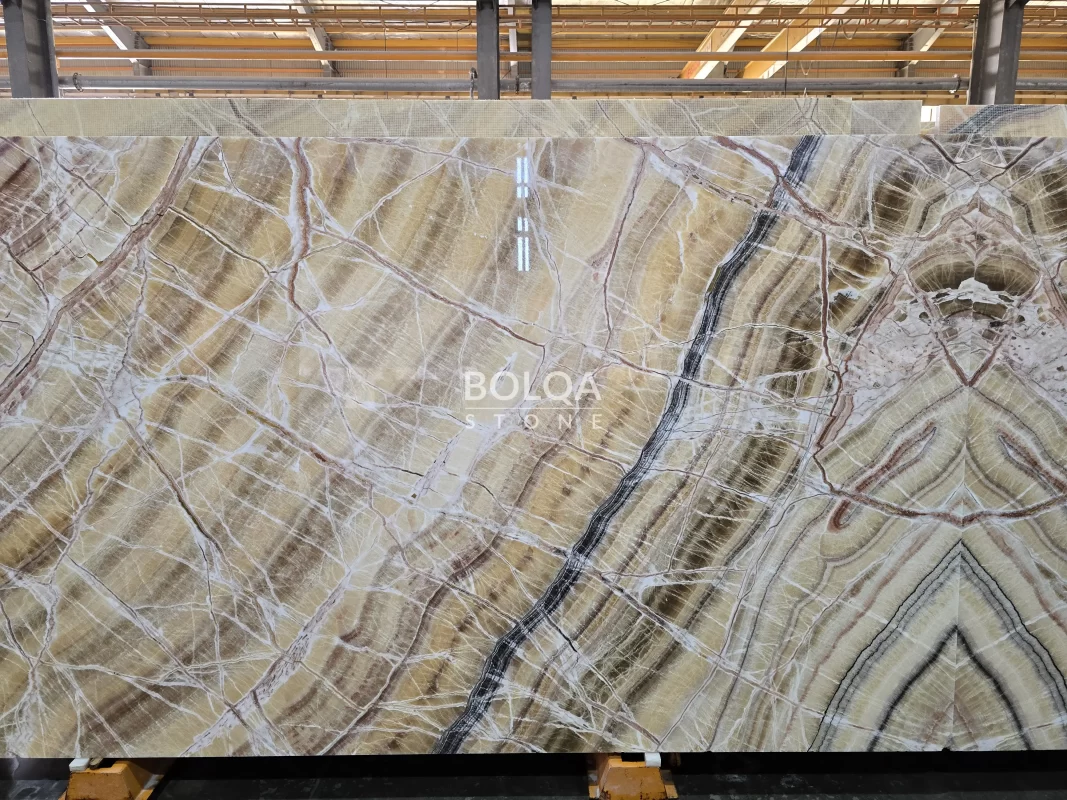 Specify Sparlo Onyx slabs and yellow onyx blocks from Iran with confidence. BOLQA provides careful color matching, precise thickness calibration, and secure A-frame packaging for safe global delivery—supporting samples, submittals, and optimized cutting plans to streamline installation.